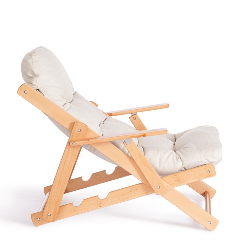 Кресло шезлонг SHNAUFF из коллекции Modern это отличное решение для дачи, сада или интерьера веранды. Кресло имеет 3 уровня регулировки положения. Каркас кресла изготовлен из натурального дерева. Съемная подушка изготовлена из натурального хлопка и набита мягким наполнителем, которые принимает форму вашего тела при посадке. Все элементы кресла изготовлены из экологически чистых материалов, отлично отшлифованы и не оставляют заноз и зацепок. Удобный подголовник и высокие шарнирные подлокотники добавят комфорта и помогут расслабиться после утомительного дня. Кресло станет отличным решением для вашего интерьера, будет смотреться презентабельно и элегантно в любой обстановке. Кресло чень просто в сборке, инструкция по сборке прилагается.