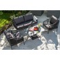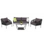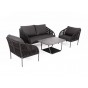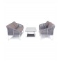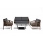 Каркас уличной мебели выполнен из износостойкого алюминия. Его дополняет серая ручная оплетка, изготовленная на основе эластичных синтетических лент из полиэфирных волокон высокой прочности.