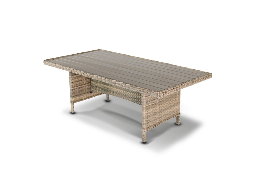 Плетеный обеденный стол «Цесена» для большой компании. Подойдет для организации лаунж-зоны в саду, на летней террасе отеля или ресторана.Каркас изготовлен из алюминия, декорированного долговечным иску..