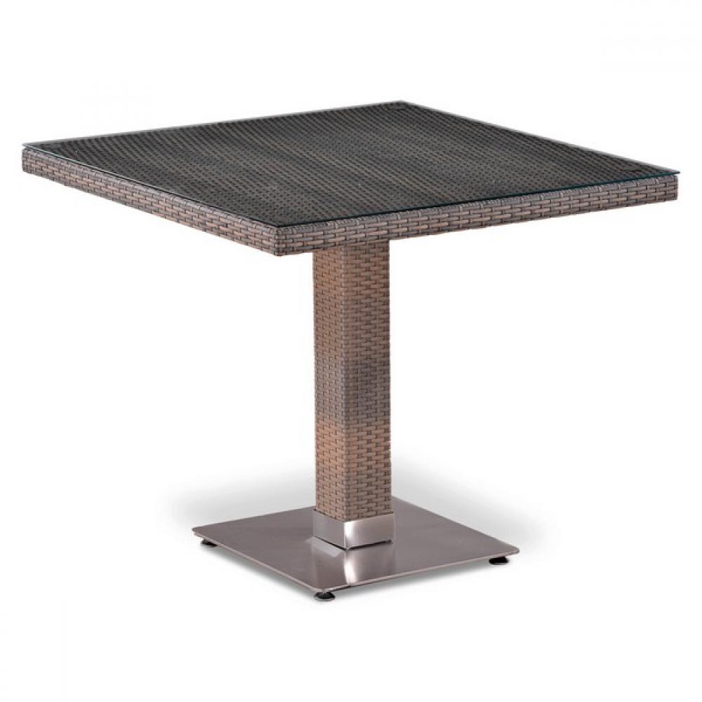 Стол: D80х80xH74 см, Стекло: закаленное- 5мм, Каркас: труба сталь , Цвет: палевый , Объем: 0,06,вес 20 кгХарактеристики:Цвет ПалевыйМатериал Искусственный ротангФорма КвадратныйСтолешница СтеклоРазмер..