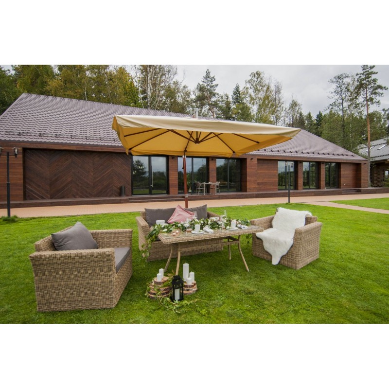 Общая высота зонта - 326 см, высота от земли до нижнего края купола - 228 см.