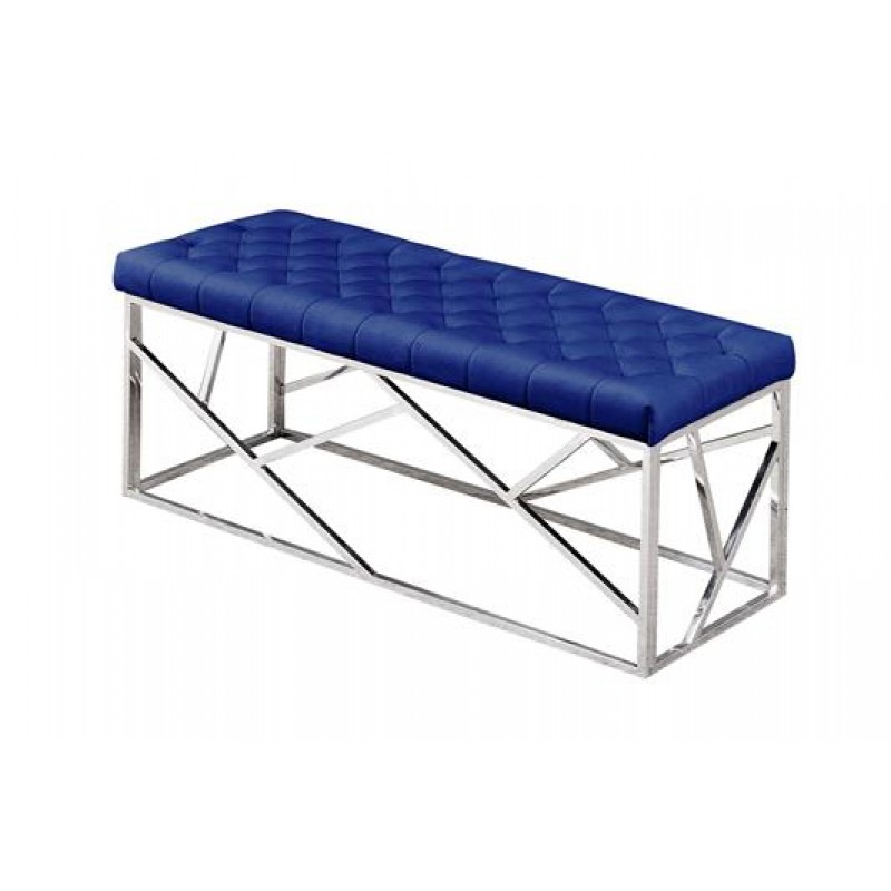 Банкетка выполнена из нержавеющей стали, что делает конструкцию прочной и надежной. Обивка сиденья - вельвет. Материал обладает особой прочностью и износоустойчивостью, приятный на ощупь, эластичный и теплый.