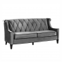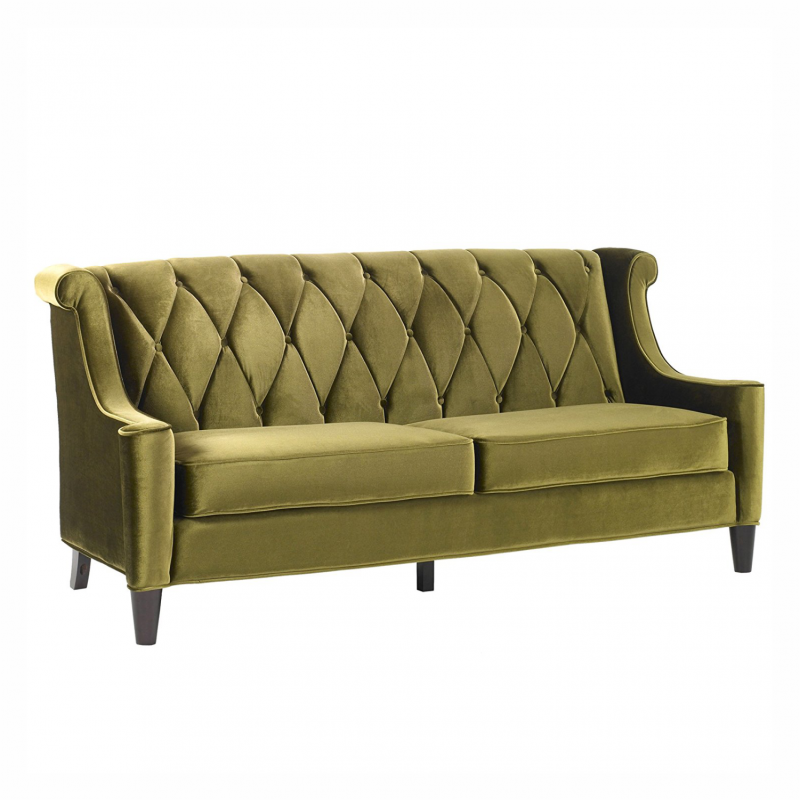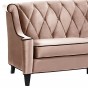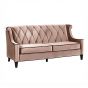Современный дизайнерский диван Баристер – идеальная мебель для отдыха. Бархатистая поверхность из велюра спокойных оттенков, устойчивые ножки из массива бука, удобные подлокотники – все это делает его прекрасным вариантом для коммерческих помещений – ресторанов, отелей, гостиниц, офисов. С не меньшим успехом такой диван может украсить и домашнюю гостиную. Спинка декорирована каретной стяжкой. Изящные подлокотники и подушки украшены темной окантовкой. На заказ возможны различные варианты обивки.