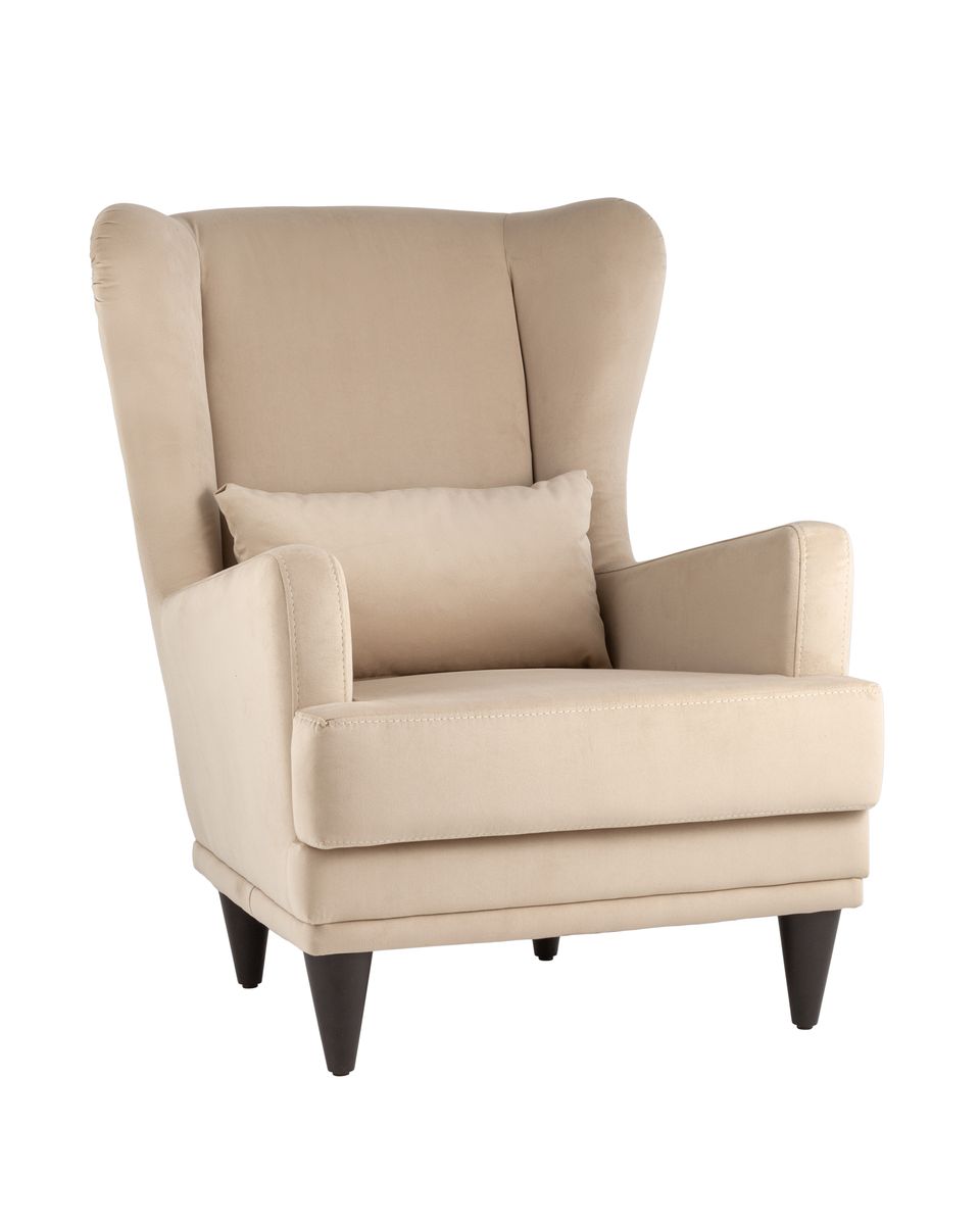 Широко расставленные ножки из массива дерева обеспечивают надежность и устойчивость конструкции. Удобная мягкая спинка, широкое сиденье, мягкие подлокотники. Обивка из мягкого велюра обеспечивает комф..