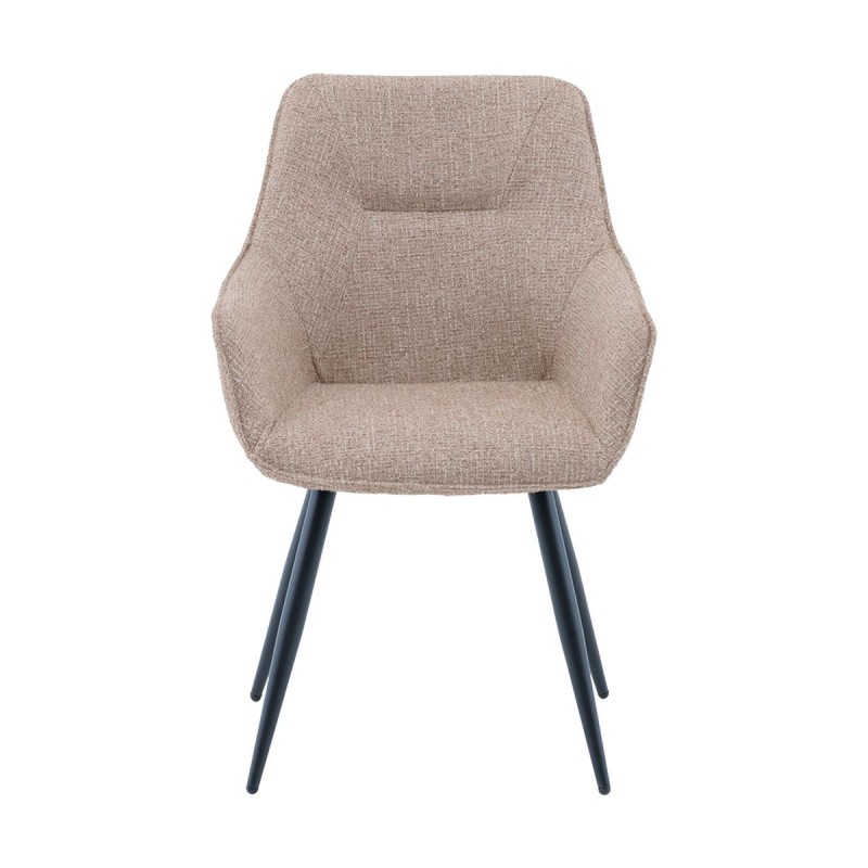 Eliana в бежевом цвете — это идеальное сочетание мягкости и лаконичного дизайна. Обивка из фактурного шенилла делает модель особенно уютной и тактильно приятной. Этот стул отлично подойдёт для кухни, балкона, дачи или кафе — везде, где хочется создать атмосферу уюта. Габариты модели составляют 75×61×58 см — комфортная ширина и высота обеспечивают удобную посадку. Изогнутая спинка и мягкие подлокотники формируют эргономичное кресельное ощущение, при этом модель сохраняет компактность. Каркас и ножки выполнены из прочного металла, окрашенного в чёрный цвет. Конструкция выдерживает нагрузку до 120 кг, сохраняя устойчивость и прочность на долгие годы. Бежевый цвет сиденья легко впишется как в тёплые, так и в нейтральные интерьеры. Стул хорошо сочетается с деревянными и керамическими поверхностями, подчёркивая современную эстетику пространства.