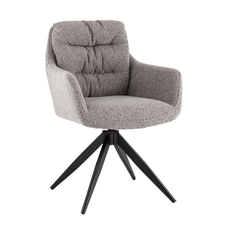 Материалы и удобство. Обивка из ткани букле добавляет текстуры и создаёт приятные тактильные ощущения, делая стул особенно комфортным для сидения. Мягкое сиденье обеспечивает дополнительное удобство, а подлокотники создают ощущение поддержки и уюта, идеально подходя для длительного пребывания за столом.