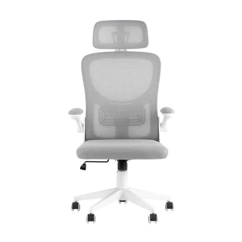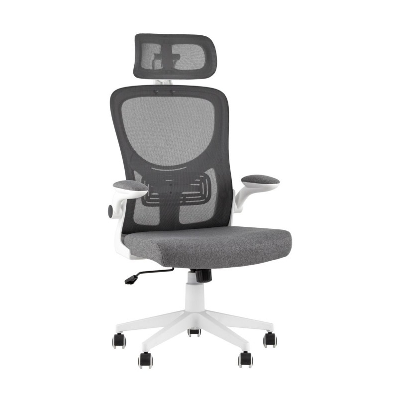 Современное, компактное и функциональное офисное кресло Airone. Удобная спинка оказывает качественную поддержку и позволяет провести в кресле долгое время без усталости. Обивка из сетки на спинке и из сплошной бежевой ткани на сиденье смотрится элегантно и стильно - это практичное решение для постоянного использования. Материал не боится повреждений и потертостей. Удобное положение легко выбрать благодаря механизму регулировки высоты и качания Top Gun. Подлокотники регулируются по высоте, а мягкие накладки обеспечивают максимальный комфорт. Регулируемый подголовник настраивается по высоте и углу наклона. Крестовина выполнена из качественного пластика белого цвета и выдерживает нагрузку до 120 кг. Нейлоновые ролики обеспечивают плавное движение без повреждений напольных покрытий, а прочные материалы гарантируют стабильность конструкции. Кресло станет идеальным выбором для работы как в домашнем кабинете, так и в офисном пространстве, обеспечивая комфорт и стильную поддержку на протяжении всего дня.
