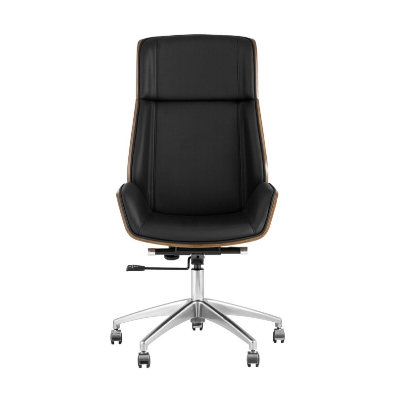 Обивка выполнена из качественной экокожи. Комфорта добавляют удобные подлокотники, а благодаря механизму регулировки высоты и качания можно выбрать наиболее удобное положение. Дизайнерская форма добавит помещению уюта и стиля, а вставки, декорированные под натуральное дерево, выглядят очень изысканно.