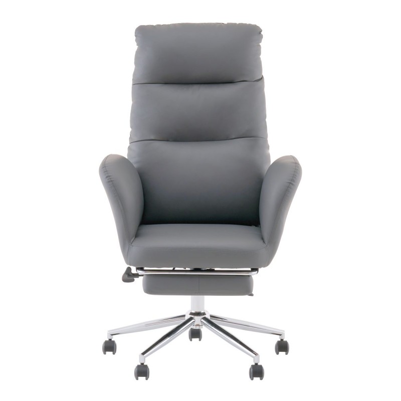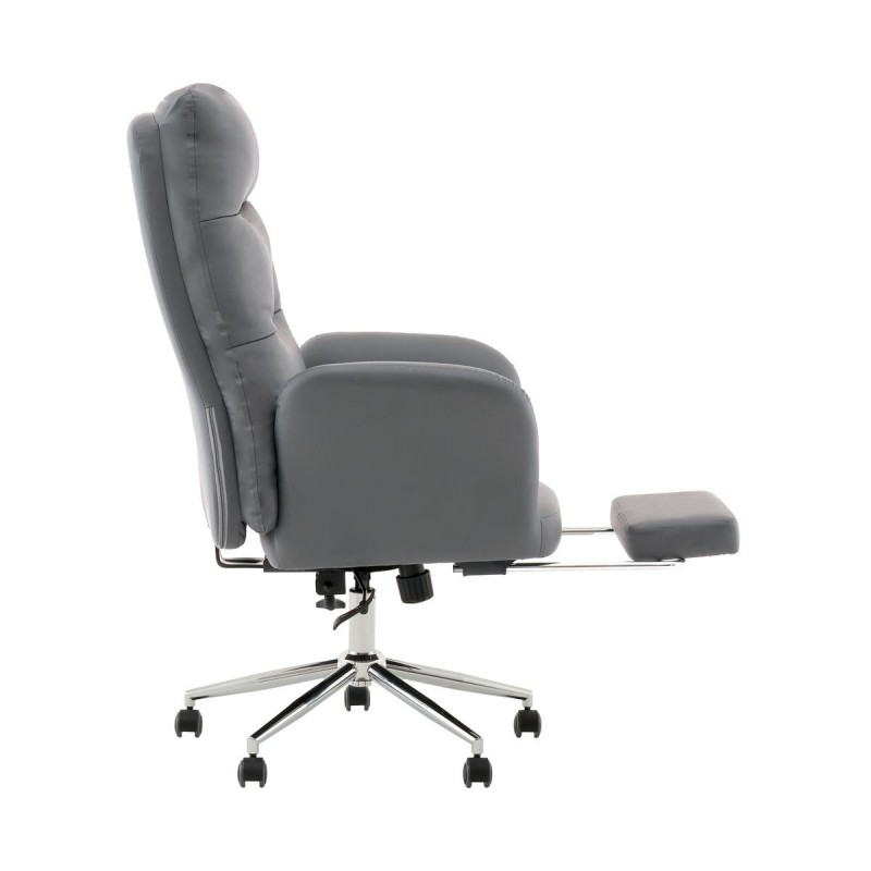 Кресло руководителя с оттоманкой выполнено в универсальном сером цвете и обтянуто прочной экокожей, приятной на ощупь. Обтекаемые формы сиденья и подлокотников создают современный и респектабельный образ, а декоративная вертикальная прострочка на спинке добавляет акцента. Максимальная нагрузка на кресло составляет 120 кг.