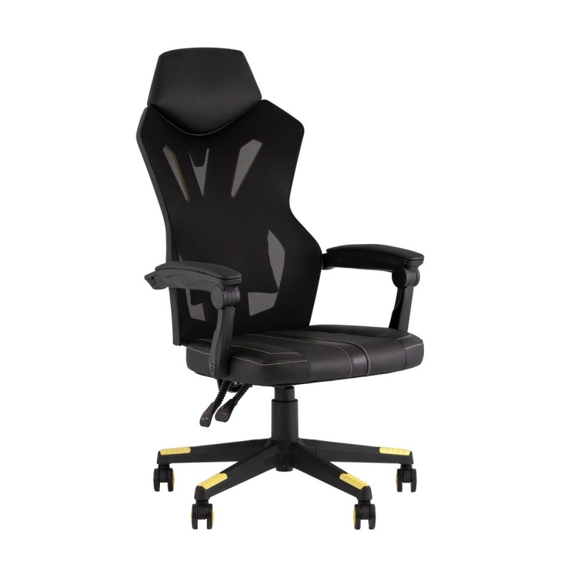 Спортивное компьютерное кресло с эргономичной формой сиденья и удобной спинкой, которая позволяет с комфортом проводить долгое время за компьютером. Модель имеет все необходимые параметры, чтобы комфортно работать и играть за компьютером без усталости. Кресло укомплектовано мягким подголовником для поддержки шеи. Обивка выполнена из качественной экокожи и сетки. Материал не боится повреждений и потертостей, на нем не видны пятна.