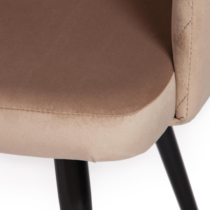 Удобный и практичный дизайн кресла VALKYRIA из коллекции Modern позволит ему вписаться практически в любой интерьер. Кресло можно расположить в гостиной, кухне или столовой. Подчеркнутый цветовой контраст изделия и его лаконичные формы идеально соответствуют концепции современного стильного пространства. Простая форма, стеганая обивка и черные металлические ножки придают креслу особую привлекательность, оригинальность и визуальную легкость. Мягкое сиденье и спинка позволяют комфортно расположиться на длительное время. Практичная тканевая обивка бежевого цвета отличается устойчивостью к износу и долговечностью, благодаря чему кресло не требует специального ухода и будет долгое время радовать вас своим первоначальным видом. Каркас кресла изготовлен из многослойного гнутоклееного шпона толщиной 10 мм.