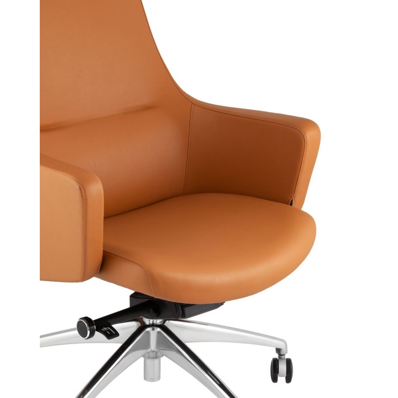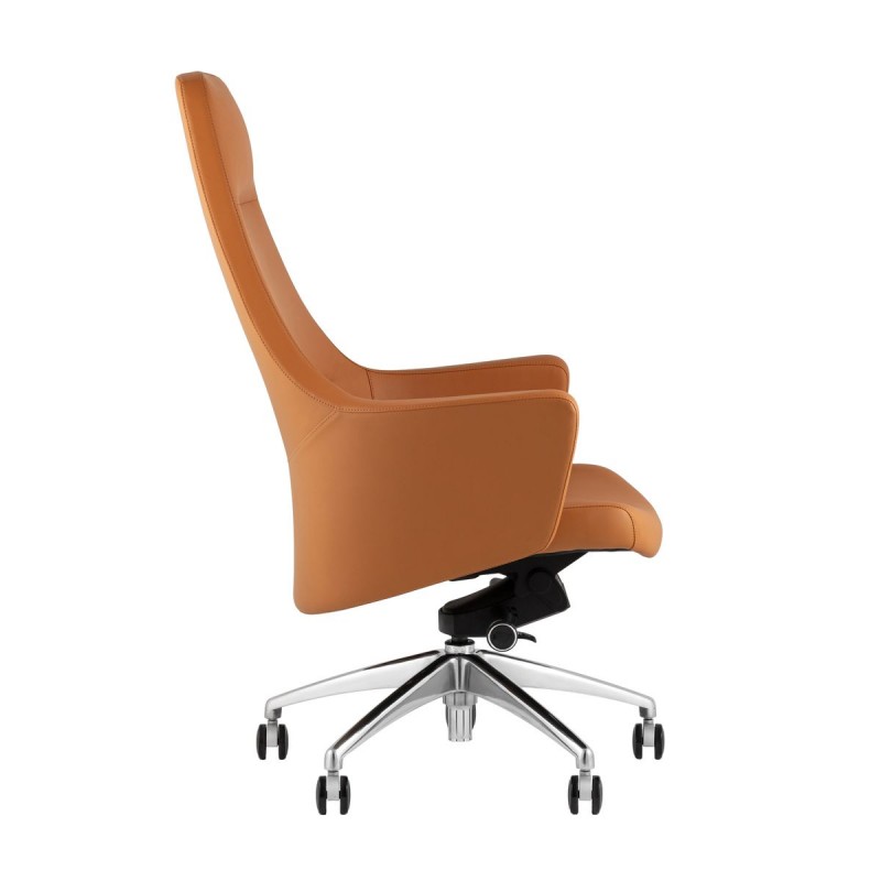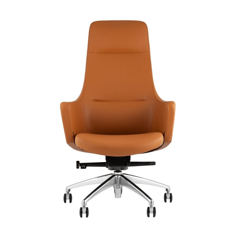 Кресло руководителя TopChairs Ferris современная элегантность и комфорт для продуктивной работы.Материалы и цвета.Обивка кресла выполнена из высококачественной экокожи теплого коричневого цвета с мягким и приятным на ощупь покрытием. Крестовина из прочного алюминия придает конструкции надежность и современный вид.Дизайн.Элегантные плавные линии спинки и сиденья обеспечивают комфорт даже при длительном использовании. Высокая спинка и эргономичные формы повторяют контуры тела, поддерживая правильную осанку. Классический коричневый оттенок в сочетании с современной алюминиевой основой создает премиальный внешний вид.Функциональность.Механизм качания "мультиблок" позволяет регулировать угол наклона и фиксировать кресло в удобном положении. Газ-лифт 4-го класса регулирует высоту сиденья в пределах 45–51 см. Кресло выдерживает нагрузку до 125 кг, а ролики из полиуретана и нейлона обеспечивают плавное и бесшумное перемещение по любым поверхностям.Место использования.Стильное и эргономичное кресло идеально подойдет для офисного пространства, рабочего кабинета или дома. Оно станет функциональным и элегантным дополнением как современного, так и классического интерьера.