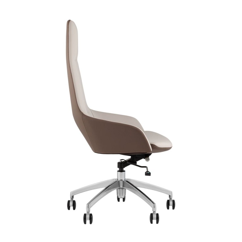 Кресло руководителя TopChairs Soulo элегантность и комфорт для современного офиса. Материалы и цвета. Обивка выполнена из высококачественной светло-серой экокожи, которая добавляет модели стиль и практичность. Задняя часть спинки выделяется контрастным серым цветом, подчеркивающим премиальный характер изделия. Крестовина из прочного алюминия обеспечивает надежную поддержку и современный внешний вид. Дизайн. Кресло сочетает строгие линии и плавные изгибы, создавая лаконичный и элегантный образ. Высокая спинка обеспечивает правильную поддержку, а широкое сиденье (56 см) добавляет комфорт для длительных рабочих часов. Мягкая прострочка на спинке и сиденье подчеркивает детали и придает изделию завершенность. Функциональность. Оснащено механизмом качания мультиблок, который позволяет зафиксировать удобное положение для работы и отдыха. Газ-лифт 4-го класса регулирует высоту сиденья (от 46 до 52 см), адаптируясь под индивидуальные потребности пользователя. Подголовник и подлокотники выполнены в едином дизайне и обеспечивают комфортную посадку, несмотря на отсутствие регулировки. Место использования. Кресло идеально подойдет для современного офиса, кабинета руководителя или домашнего рабочего пространства. Его стильный внешний вид и удобная конструкция делают его функциональным дополнением к любому интерьеру. Максимальная нагрузка. Кресло выдерживает до 125 кг, обеспечивая надежность и долговечность в повседневном использовании.