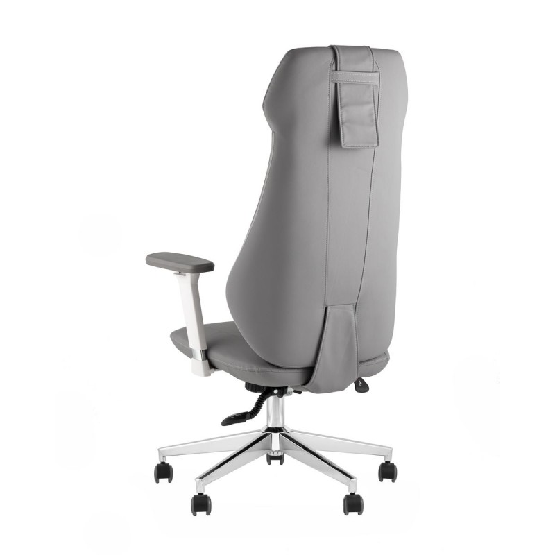 Кресло руководителя TopChairs Trophey – это сочетание современного дизайна и комфорта. Его обивка выполнена из черной экокожи, которая не только придает изделию презентабельный внешний вид, но и отличается долговечностью и простотой в уходе. Высокая спинка с плавными изгибами поддерживает естественное положение спины, обеспечивая удобство даже при длительной работе. Кресло оснащено регулируемым подголовником, который помогает снизить нагрузку на шею и плечи. Широкое сиденье и мягкая набивка создают комфортную посадку. Подлокотники с регулировкой по высоте (1D) позволяют подобрать оптимальное положение рук для работы за столом. Механизм качания «топ-ган» обеспечивает плавный ход кресла и возможность фиксации в рабочем положении. Газ-лифт 4-го класса отвечает за регулировку высоты сиденья в диапазоне от 44 до 52 см. Прочная крестовина и полиуретановые ролики гарантируют устойчивость и плавное передвижение по разным типам покрытий. Лаконичный дизайн и черный цвет делают кресло универсальным – оно гармонично впишется как в офисное пространство, так и в домашний рабочий кабинет. Максимальная нагрузка до 120 кг подтверждает его надежность. Идеальный выбор для тех, кто ценит стиль, комфорт и практичность!