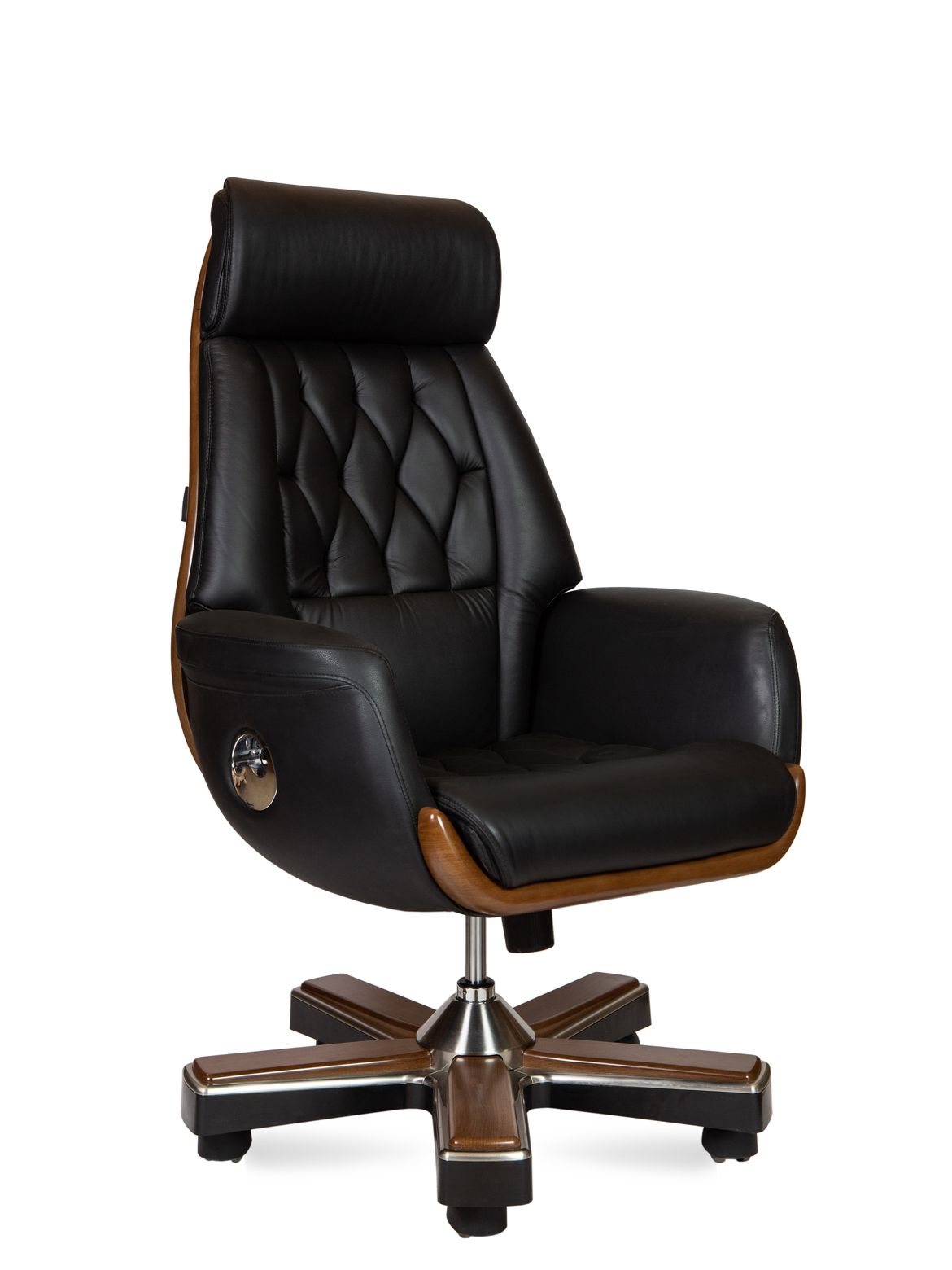 Классическое кресло с простежкой спинки типа «каретная стяжка», выполнено из натуральной кожи высшего качества. Кресло оснащено синхро-механизмом, с фиксацией наклона в любом положении. Вставки из выс..