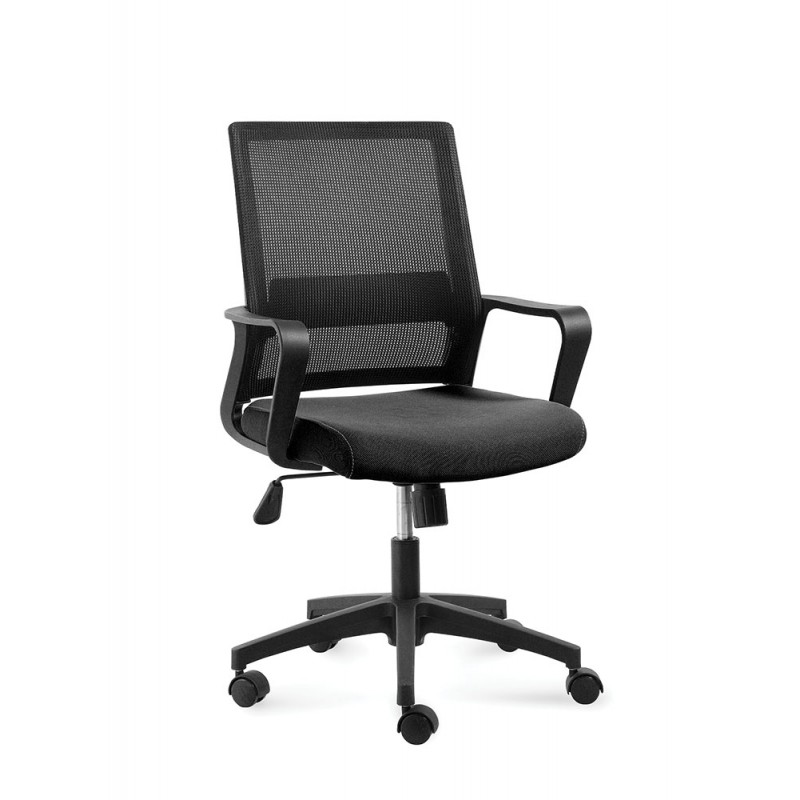 Современное недорогое эргономичное кресло для персонала. Характеризуется: - не монолитный пластиковый каркас – спинка крепится к сидушке надежным крепежем (8 болтов) - сиденье из ткани повышенной износостойкости, в основании поролон плотностью 40 кг/м.куб, - широкое сиденье - спинка из акриловой сетки повышенной износостойкости - встроенный поясничный упор - механизм качания с возможностью фиксации кресла в рабочем положении, с регулировкой усилия на качание. - роликовые колеса с прорезиненными вставками (для сохранения напольных покрытий). Максимальная нагрузка 90 кг.