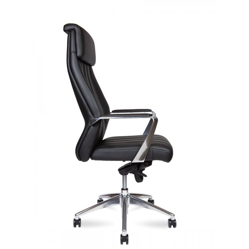 Новое кресло business класса. Отделка высококачественной экокожей. В серии есть два типа директорских кресел, кресло с высокой спинкой и конференц-кресло на полозьях. Подлокотники и крестовина из полированного алюминия. Высокое качество материалов и исполнения. Механизм качания мультиблок, выдерживающий нагрузку до 150 кг, с фиксацией наклона в любом положении. Гарантия от производителя 3 года. Сертификат BIFMA.