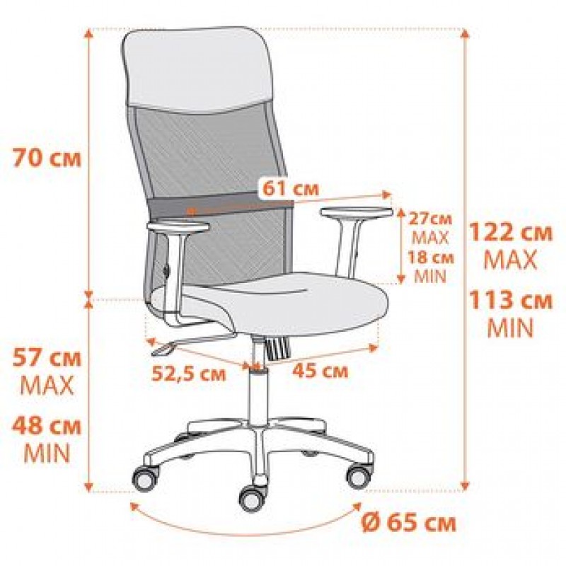 Практичное компьютерное кресло PRACTIC PLT – стильное решение для создания идеального интерьера в рабочем кабинете офиса или городской квартиры или загородного дома. Прочная 5-лучевая полиамидная крестовина диаметром 650 мм надежна и устойчива к усиленной эксплуатации. Настраиваемые по высоте Т-образные подлокотники с приятными на ощупь накладками из вспененного пластика, механизм регулировки высоты сиденья и угла наклона до 15 градусов позволят принять комфортную позу и снять напряжение с позвоночника. Интегрированный в чехол подголовник сделает длительное времяпрепровождение за компьютером комфортным и приятным. Модель оборудована газлифтом 3 класса с ходом 100 мм. Мягкое сиденье с наполнителем из пенополиуретана плотностью не менее 30 кг/м3 обладает высокими эксплуатационными качествами, не меняет форму на протяжении длительного времени. Благодаря высококачественным полиамидным роликам кресло легко перемещается из одного помещения в другое. Колесики дополнительно прорезинены, не царапают напольное покрытие и подходят для использования на паркете и ламинате. Диаметр штока ролика – 11 мм. Анатомическая спинка и удобная посадка модели максимально точно подстраиваются под физические особенности тела человека. Компьютерное кресло обито сеткой плотностью 280 г/м2, обеспечивающей вентиляцию в летний период времени, а также износостойкой высококачественной искусственной кожей, не требующей сложного ухода. Сетка используемая при изготовлении кресла, выдерживает до 25 000 циклов на истирание по Мартиндейлу, экокожа 50 000 циклов. Модель черного цвета выглядит стильно и необычно, подчеркнет безупречный вкус владельца, будет радовать своей долговечностью, красотой и практичностью продолжительное время. Кресло поставляется в разобранном виде. Необходима простая сборка по прилагаемой инструкции. Максимальная нагрузка 120 кг.