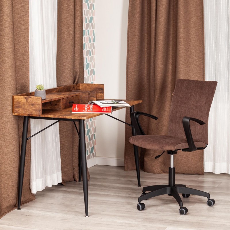 Практичное компьютерное кресло SPARK идеально подойдет для создания комфортного рабочего пространства в доме или офисе. 5-лучевая полиамидная крестовина диаметром 600 мм надежна, прочна, долговечна. Компьютерное кресло регулируется по высоте при помощи газлифта 3 класса с ходом 100 мм, что позволяет настроить его исходя из анатомических особенностей владельца. Высококачественные ролики дополнительно прорезинены для предотвращения повреждения напольного покрытия. Отлично подходят для использования на паркете и ламинате. Диаметр штока ролика – 11 мм. Эргономичная спинка и удобное сиденье с мягким наполнителем из пенополиуретана плотностью не менее 30 кг/м3 легко подстраиваются под контуры тела, не деформируются со временем. Фиксированные пластиковые подлокотники помогут снизить нагрузку на шею и спину, уменьшат усталость и напряжение в позвоночнике, повысят производительность на рабочем месте. Оригинальная модель обита флоком с водоотталкивающей пропиткой 320г/м2. Такой материал не требует сложного ухода, устойчив к механическим повреждениям, приятен на ощупь. Ткань, используемая при изготовлении кресла, выдерживает до 50 000 циклов на истирание по Мартиндейлу. Стильное компьютерное кресло коричневого цвета отличается элегантностью, практичностью и привлекательностью, удивит владельца своей функциональностью, надежностью и долгим сроком службы. Модель поставляется в разобранном виде. Необходима простая сборка по прилагаемой инструкции. Максимальная нагрузка 100 кг.