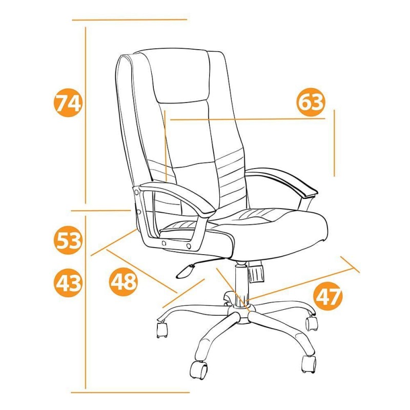 Механизм качания с фиксацией в вертикальном положении. Подлокотники - пластик с мягкими накладками. Крестовина хромированная. Ролики - прорезиненные с хромированной накладкой. Максимальная нагрузка 120кг.