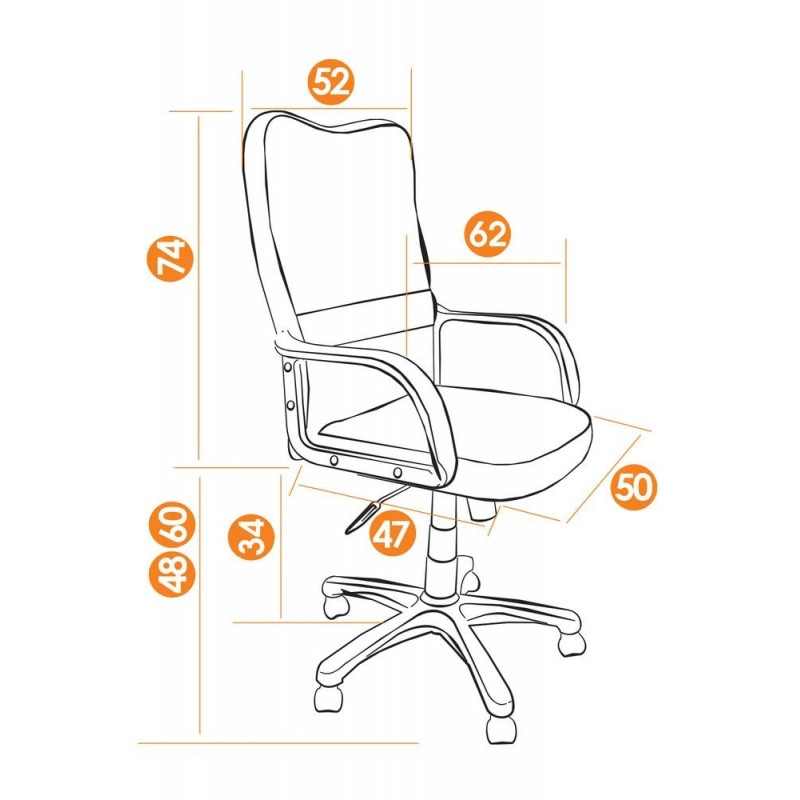 Механизм качания с фиксацией в вертикальном положении. Подлокотник, крестовина и ролики - пластик. Максимальная нагрузка 120кг.