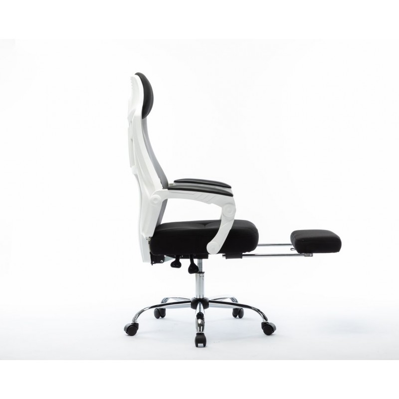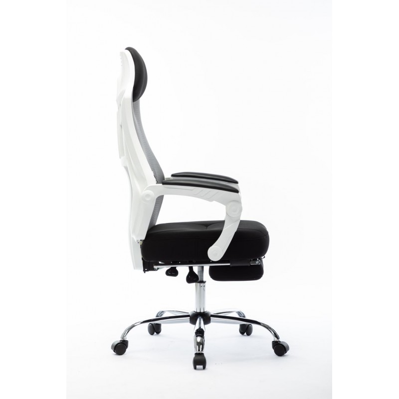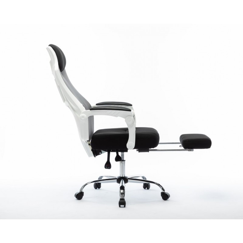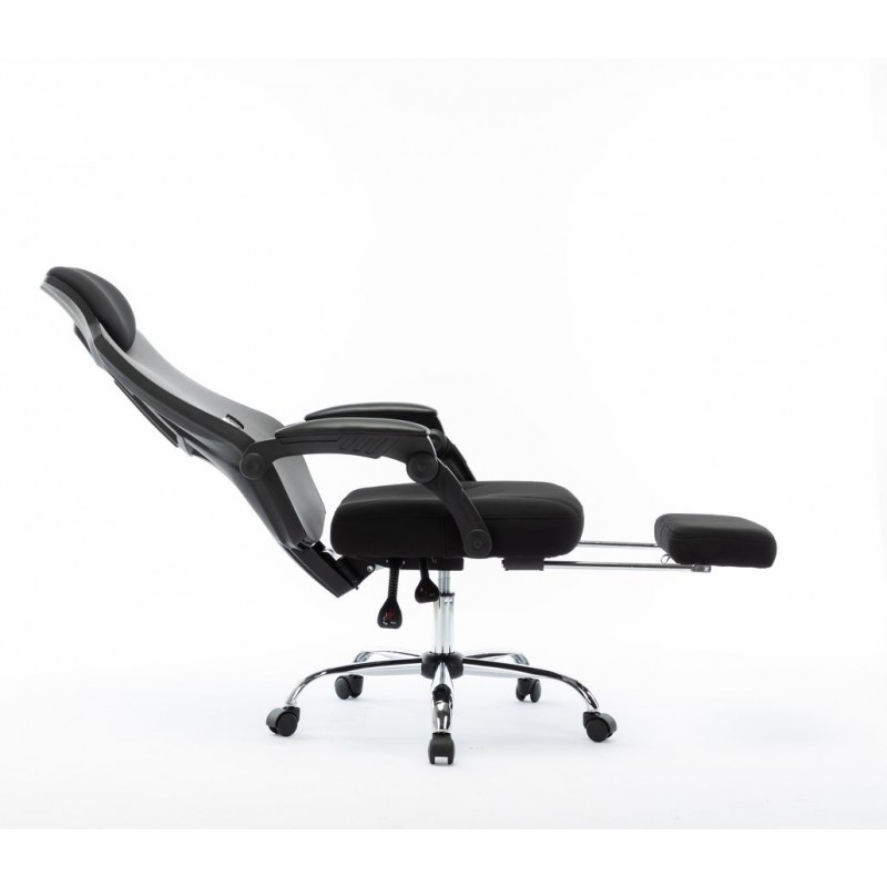 Ультрасовременное усовершенствованное компьютерное кресло «007 new» практически не имеет аналогов на нашем рынке. В нем сочетаются новейшие веяния европейского дизайна, харизматичный, стильный внешний вид и повышенный комфорт. Кресло «007 new» имеет выдвижную опору для ног, которая позволяет принять максимально комфортное положение, недоступное в большинстве других моделей. Выдвижная подножка для поддержки ног позволяет принять лежачее положение в минуты отдыха, снимает нагрузку с позвоночника, улучшает кровообращение. При раскладывании кресла ручки двигаются синхронно. Это существенно улучшает эргономику кресла. Спинка регулируется по высоте. Подлокотники с мягкой вставкой из экокожи. Высокий удобный подголовник. Хромированный газ-потрон. Максимальная нагрузка 120 кг.