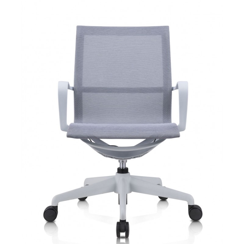 Каркас: серый ·Подлокотники: серые пластик ·Механизм качения: с фиксацией в четырёх положениях и со слайдером ·Газлифт: 3-класса, ·Крестовина: белая из нейлона ·Колеса: из PU, серые. Сертификат Bifma Максимальная нагрузка 120 кг. Гарантия 5 лет.