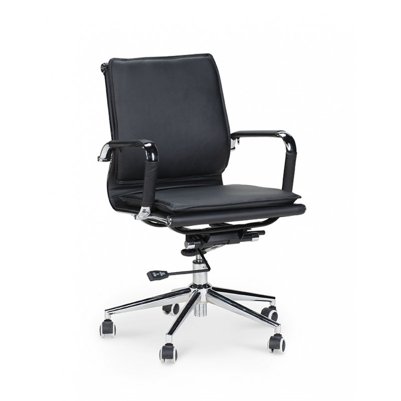 Харман отличаетcя продуманным дизайном и является одной из популярнейших моделей в Европе. Им оснащают самые современные офисы. Обычно аналиги данной модели комплектуются более дешевыми крестовинами. В нашей модели крестовина дизайнерская, хромированные лучи переменного сечения сужаются к концам. Это придает креслу изысканный оригинальный вид. Подлокотники защищены съемными чехлами на молниях из экокожи. Это особенно удобно для тех, кто не любит соприкосновения руками с металлическими подлокотниками. Максимальная нагрузка 120 кг.