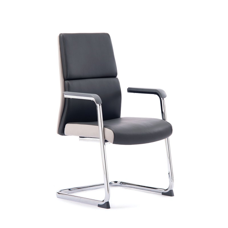 Двухцветная отделка высококачественной экокожей. В серии есть два типа директорских кресел, более дорогое (подлокотники и крестовина из полированного алюминия) и подешевле (подлокотники и крестовина