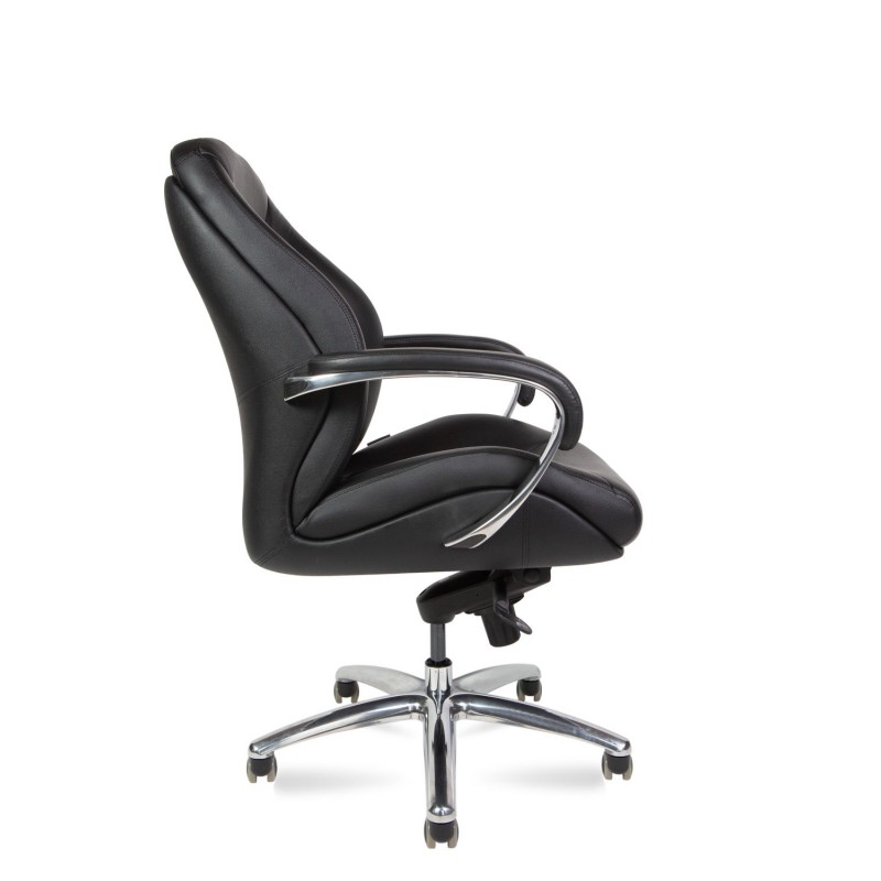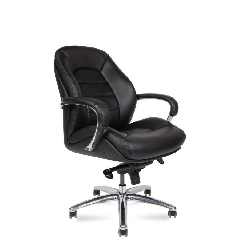 Кресло руководителя First class. Материал натуральная кожа. Спинка и нижняя часть сиденья у кресла отделано экокожей. Сиденье и спинка формованное PPU. Механизм качания с фиксацией в любом положении. Регулировка высоты. Регулировка жесткости качания. Подлокотники полированный алюминий. Накладки натуральная кожа. Крестовина полированный алюминий. Колеса PU. Максимальная нагрузка 130 кг. Масса кресла 27,5 кг. Сертификат BIFMA. Гарантия год.