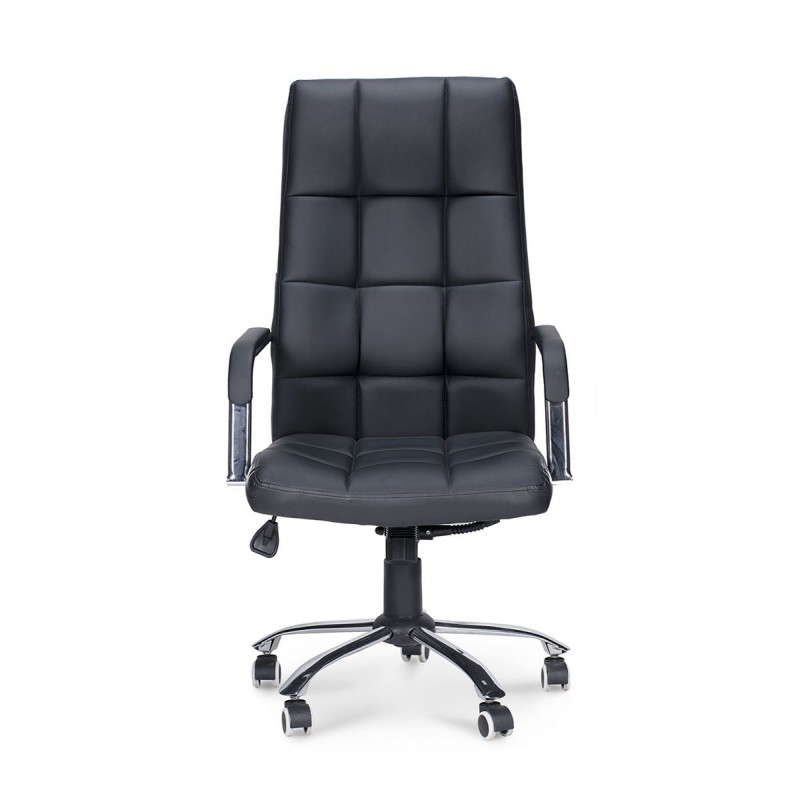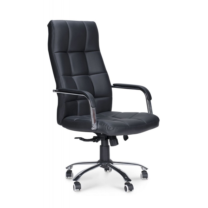 Недорогое современное офисное кресло с декоративной отделкой сиденья и спинки. Покрытие - высококачественная экокожа. Крестовина и подлокотники стальные хромированные. С мягкой накладкой из экокожи на подлокотниках.Максимальная нагрузка 120 кг.