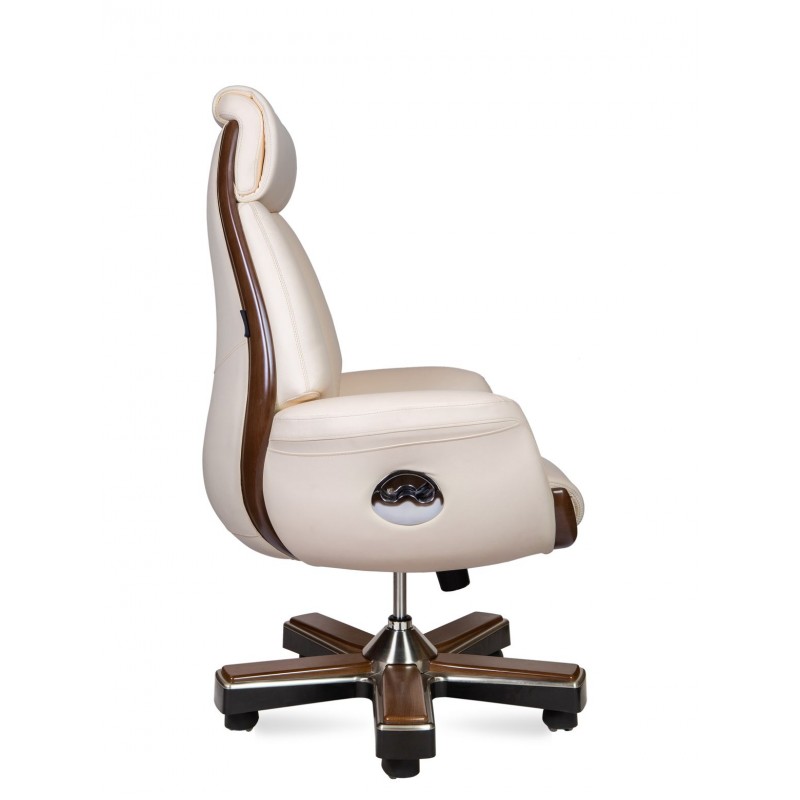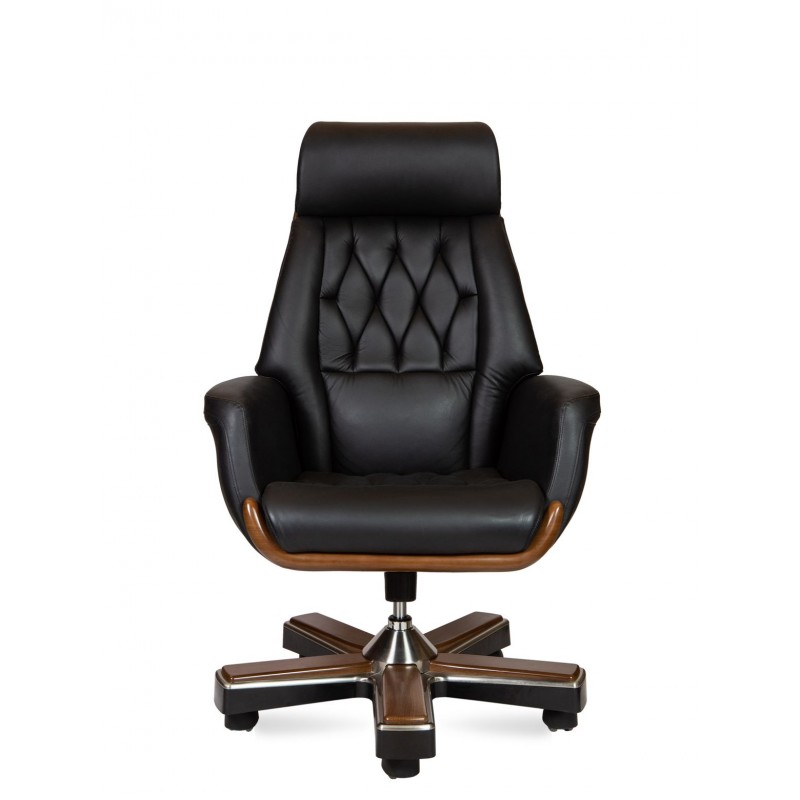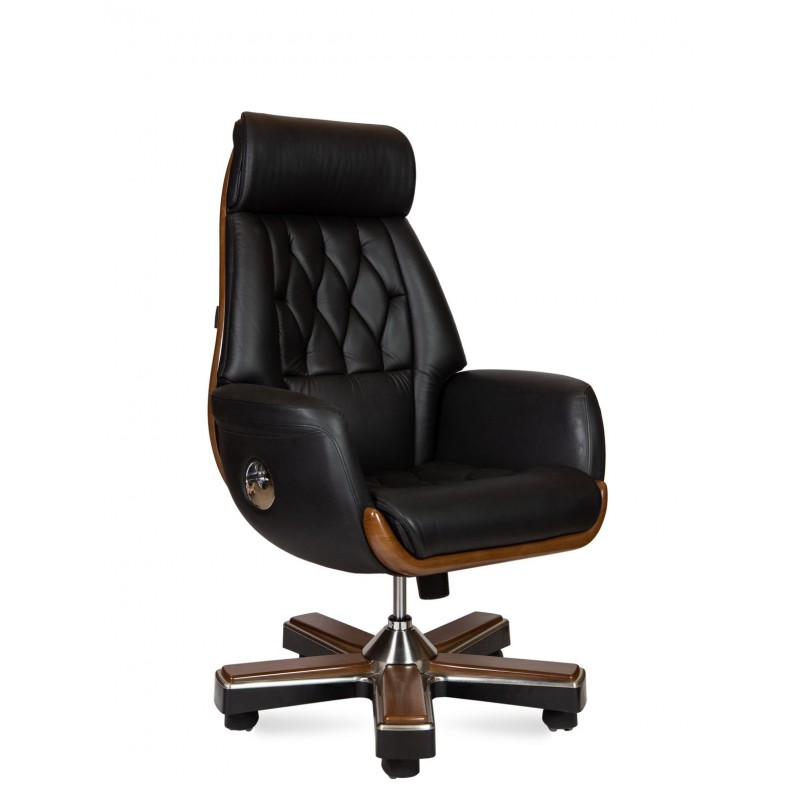 Классическое кресло с простежкой спинки типа «каретная стяжка», выполнено из натуральной кожи высшего качества. Кресло оснащено синхро-механизмом, с фиксацией наклона в любом положении. Вставки из высококачественного пластика под натуральное дерево гармонично интегрированы в корпус кресла.