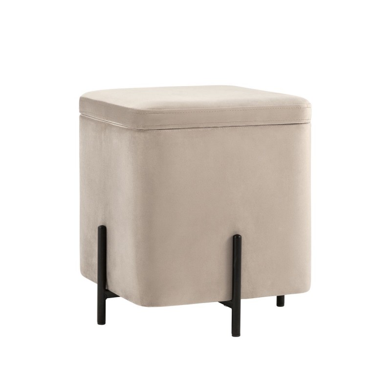 Лаконичный круглый пуф на металлических ножках. Мягкая обивка выполнена из износостойкого велюра, тактильно приятный и долговечный материал. Металлические ножки черного цвета высотой 13 см. выдерживают нагрузку до 80 кг. Подпятники в основании ножек делают пуф более устойчивым и предотвращают скольжение. Под сидением имеется ящик для хранения мелочей, крышка полностью съемная. Пуфик станет отличным дополнением для спальни, прихожей или зала.