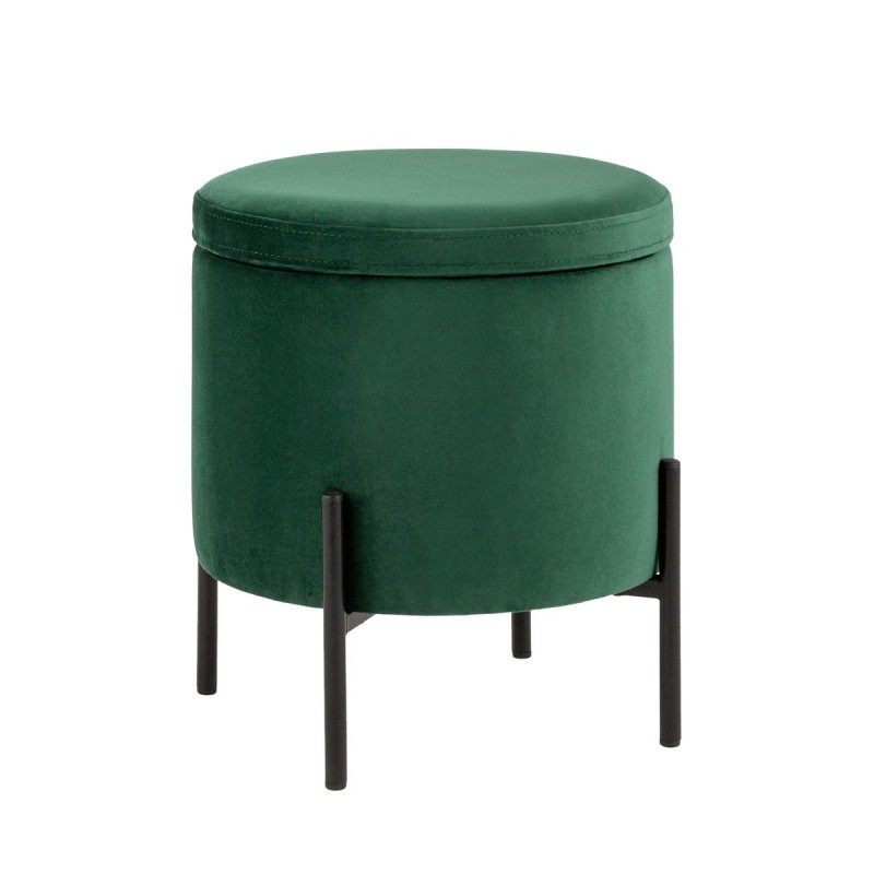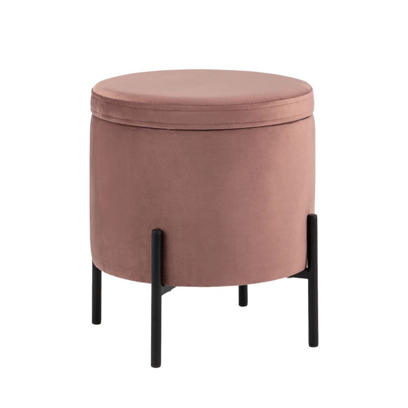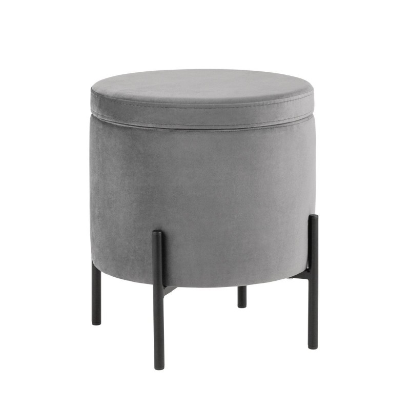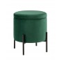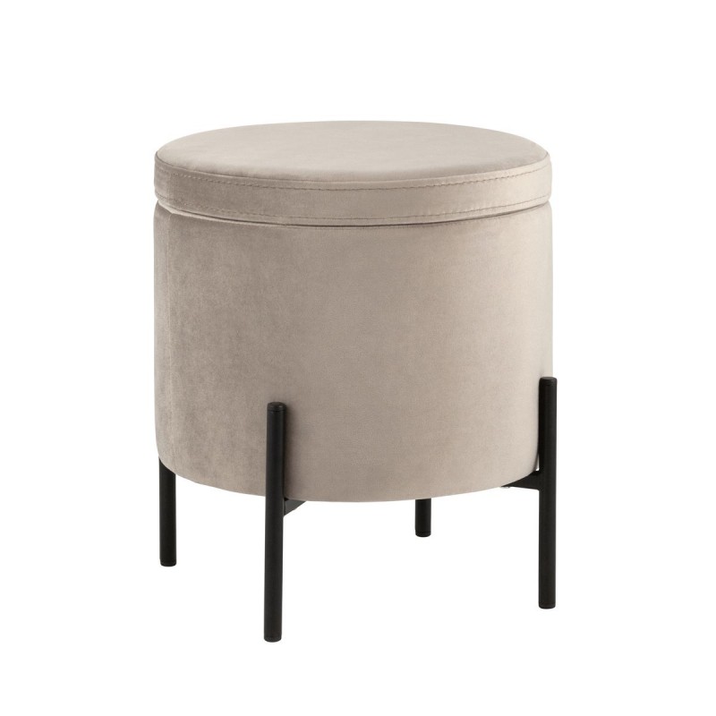 Лаконичный круглый пуф на металлических ножках. Мягкая обивка выполнена из износостойкого велюра, тактильно приятный и долговечный материал. Металлические ножки черного цвета высотой 13 см. выдерживают нагрузку до 80 кг. Подпятники в основании ножек делают пуф более устойчивым и предотвращают скольжение. Под сидением имеется ящик для хранения мелочей, крышка полностью съемная. Пуфик станет отличным дополнением для спальни, прихожей или зала.
