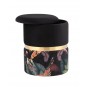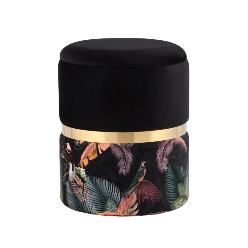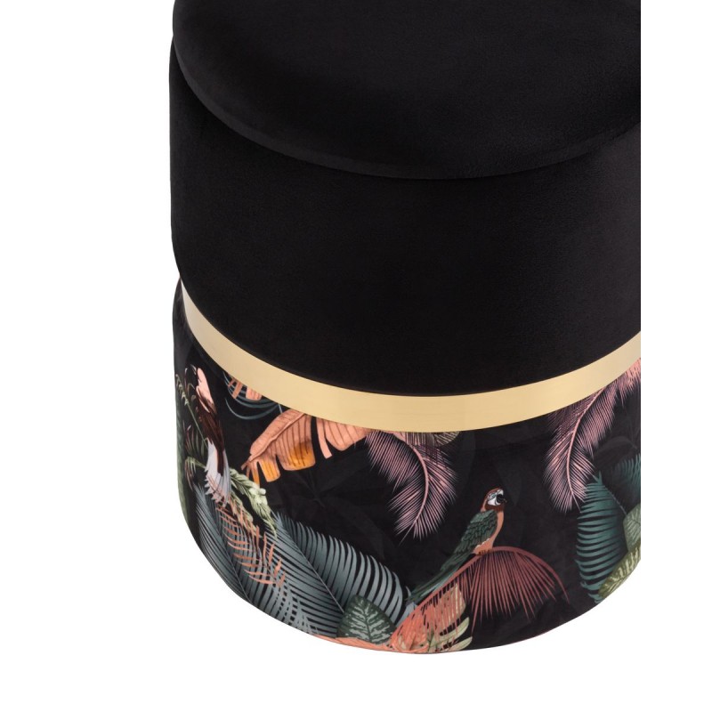 Лаконичная модель пуфа в мягкой обивке прекрасно впишется в современные интерьеры. Обивка выполнена из велюра в светлом и темном оттенках и украшена металлическим ободком в золотом цвете. Под сиденьем имеется ящик для хранения различных мелочей. В основании предусмотрены специальные подпятники, которые делают пуф более устойчивым и предотвращают скольжение.