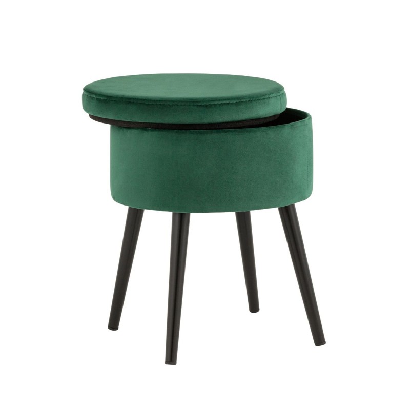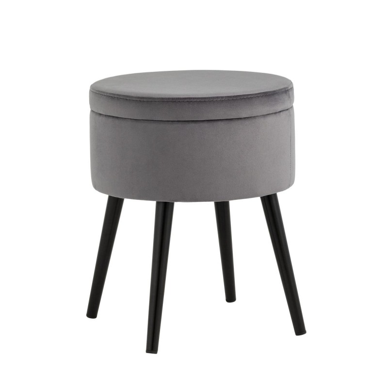 Компактный пуф с ящиком в лаконичном стиле. Мягкая обивка выполнена из износостойкого велюра, тактильно приятный и долговечный материал. Металлические ножки черного цвета высотой 26 см выдерживают нагрузку до 80 кг. Под сидением имеется ящик для хранения мелочей, крышка полностью съемная. Подпятники в основании ножек делают пуф более устойчивым и предотвращают скольжение.