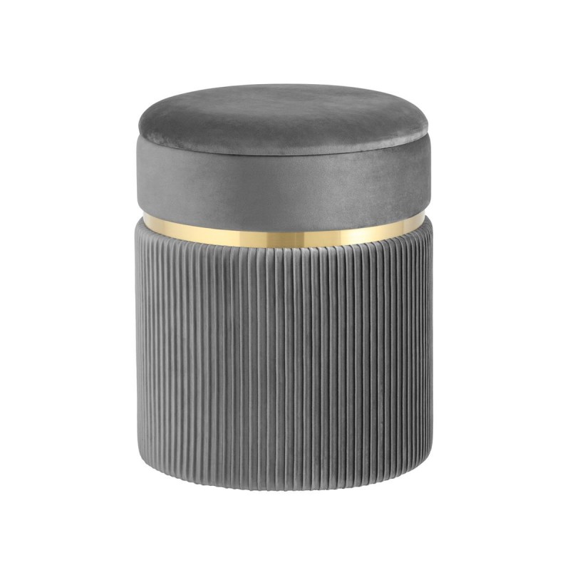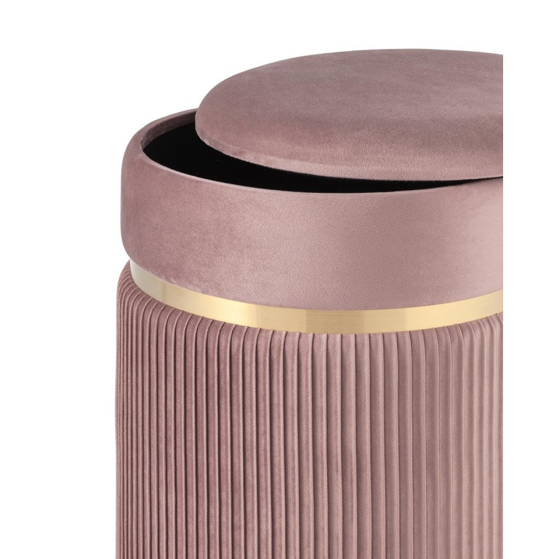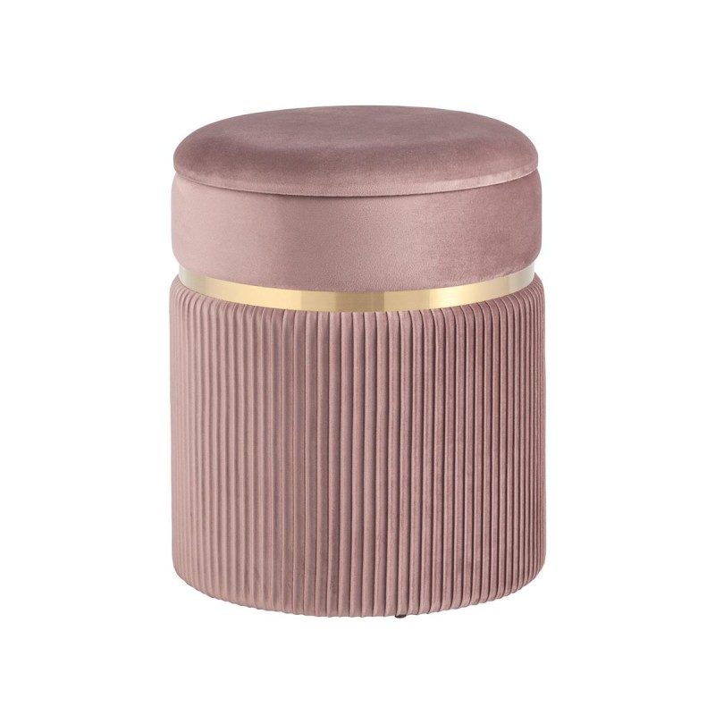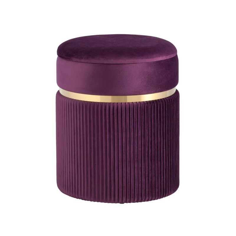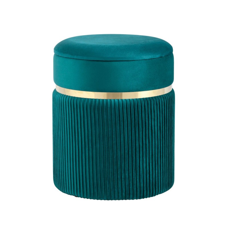 Лаконичная модель пуфа в обивке из мягкого велюра, которая дополнит интерьер вашего дома. Обивка красиво украшена декоративными оборками и металлическим ободком в золотом цвете. Под сиденьем имеется ящик для хранения различных мелочей. В основании предусмотрены специальные подпятники, которые делают пуф более устойчивым и предотвращают скольжение.