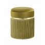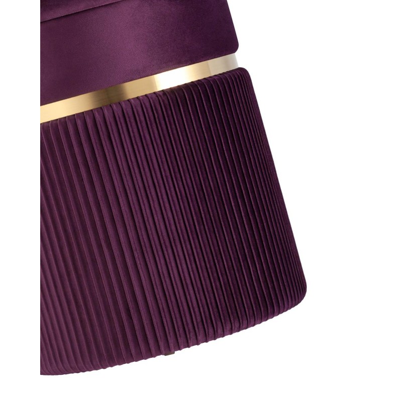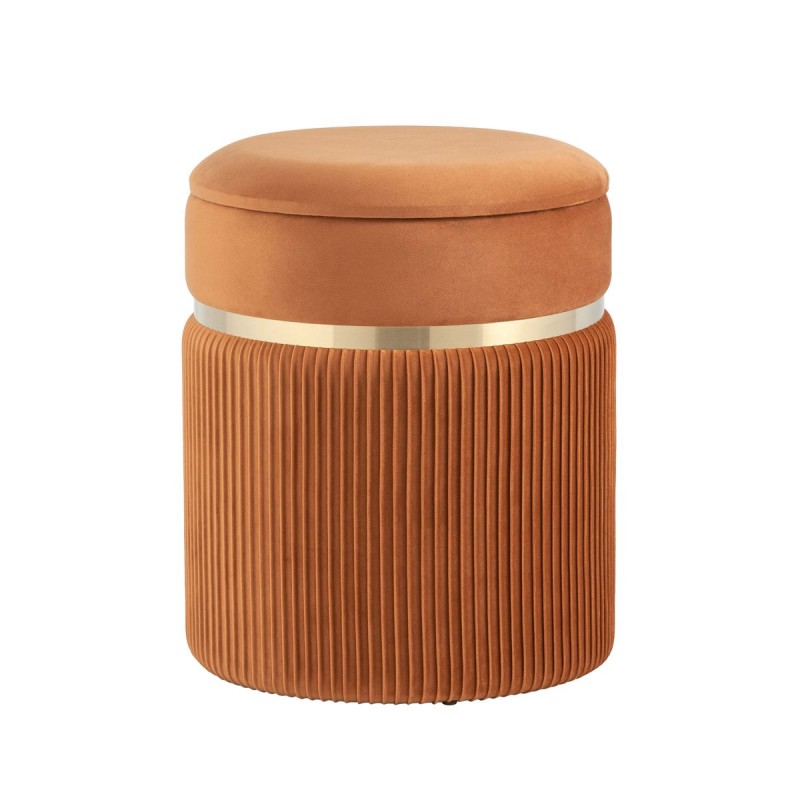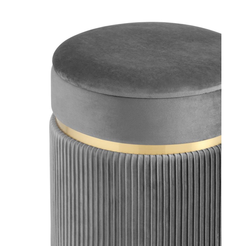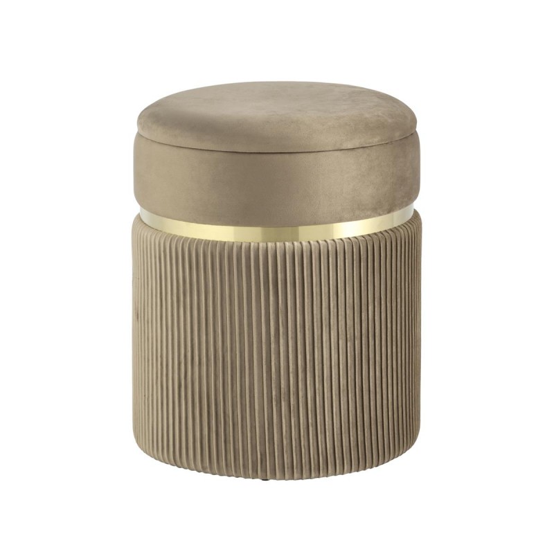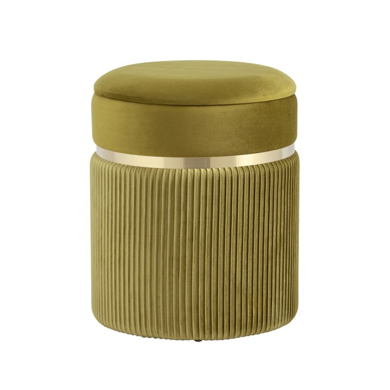 Лаконичная модель пуфа в обивке из мягкого велюра, которая дополнит интерьер вашего дома. Обивка красиво украшена декоративными оборками и металлическим ободком в золотом цвете. Под сиденьем имеется ящик для хранения различных мелочей. В основании предусмотрены специальные подпятники, которые делают пуф более устойчивым и предотвращают скольжение.