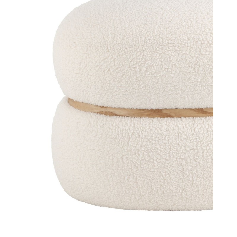 Лаконичный мягкий пуф в скандинавском стиле. Обивка выполнена из искусственного меха тедди - очень мягкий и приятный на ощупь материал. Прочный каркас из фанеры выдерживает на грузку до 150 кг. Вставка по середине из светлого массива дерева гармонично сочетается с белой обивкой. Отличное дополнение для спальни, детской или прихожей