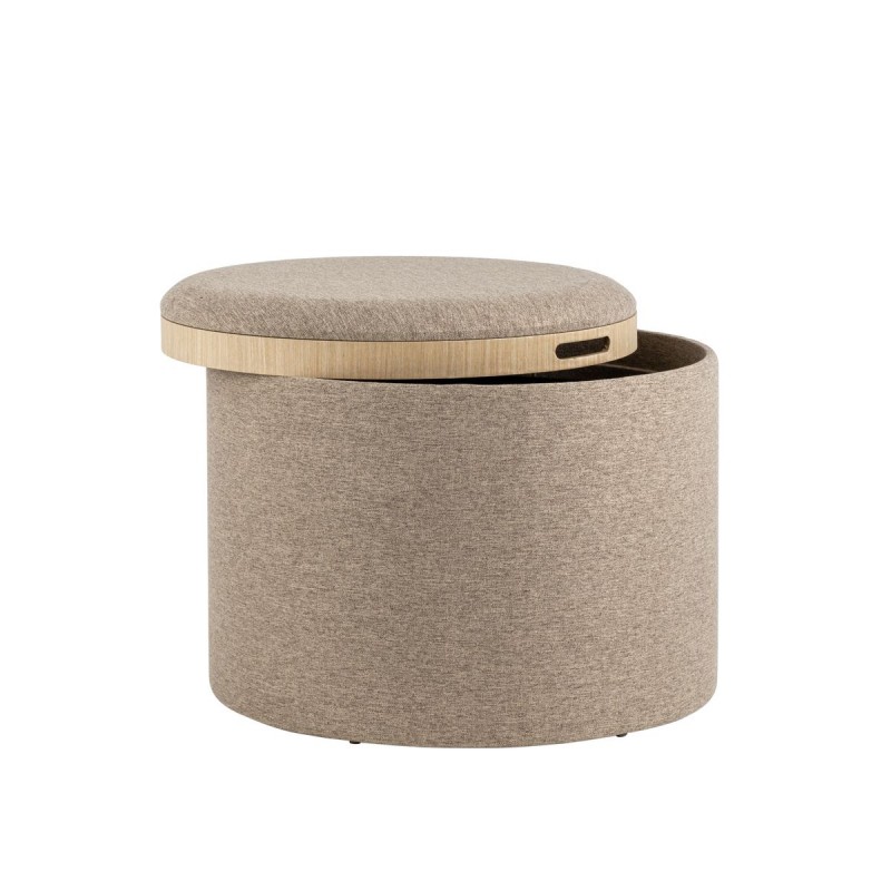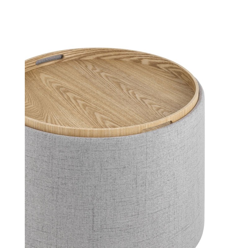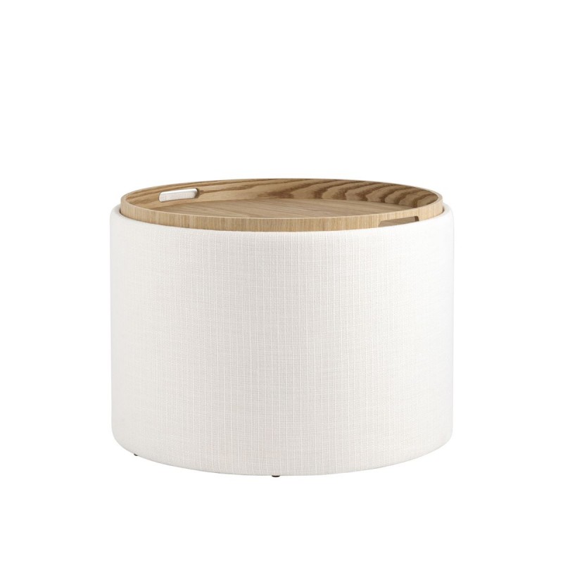 Мягкий пуф с ящиком станет незаменимым украшением интерьера. Он не только удобный, но и функциональный. Благодаря двухсторонней крышке, пуф можно трансформировать в журнальный столик. Столешница выполнена из светлого дерева с бортиками по краям и вырезными ручками для удобства, и безопасности при использовании. Крышка пуфика полностью съемная и при необходимости её можно использовать как поднос. Полезное дополнение - ящик для хранения различных мелочей, внутри обит тканью. Компактный и вместительный, такой пуфик наполнит пространство особым уютом и теплом. Подойдет для любого интерьера - как в классическом стиле, так и в современном.