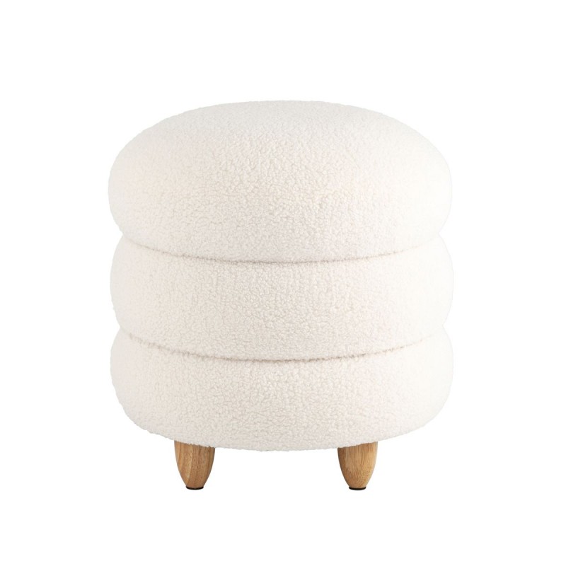 Круглый пуфик Винни в скандинавском стиле. Обивка выполнена из ткани тедди - очень мягкий и приятный на ощупь материал. Прочный каркас из фанеры выдерживает нагрузку до 150 кг. Вместительный ящик для хранения мелочей внутри обит плотной тканью. Полностью съемная крышка придаёт пуфу объемность, идеально дополняя общий дизайн. Ножки из светлого массива дерева гармонично сочетаются с белой обивкой. Пуф Винни отличный вариант для спальни, детской и прихожей.