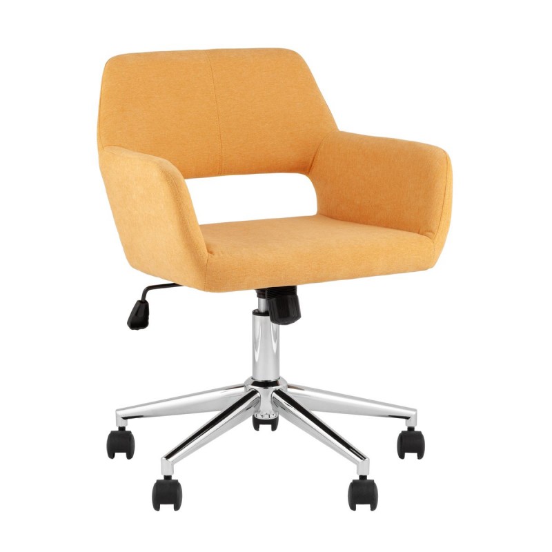 Стул офисный ROSS комфорт и практичность в стильном дизайне. Обивка выполнена из прочной и приятной на ощупь рогожки, которая придаёт стулу современный и уютный вид. Металлическая крестовина с хромированным покрытием обеспечивает долговечность и устойчивость. Нейлоновые ролики гарантируют плавное перемещение по различным покрытиям пола. Элегантные линии спинки и подлокотников создают гармоничный образ, идеально подходящий как для рабочего кабинета, так и для домашнего использования. Оригинальный желтый оттенок обивки добавляет яркости в любой интерьер. Механизм качания "топ-ган" позволяет адаптировать угол наклона для комфортного отдыха. Высота сиденья регулируется в пределах 45-55 см, что делает стул удобным для пользователей разного роста. Стул выдерживает нагрузку до 120 кг. Универсальный дизайн и функциональность делают этот стул отличным выбором для дома, офиса или рабочего места.