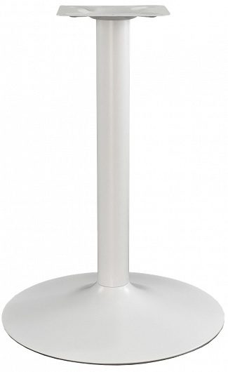 Подстолье металлическое. Труба и основание-белое матовое (порошковое напыление). Основание "рюмочкой". Рекомендуемый размер столешницы: Ø80, 80х80.Характеристики:Высота, 73 смДиаметр, 55 смВес, 6,49 к..