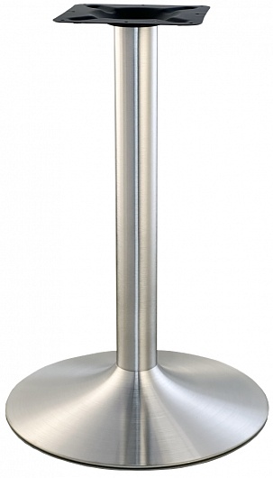 Подстолье из полированной нерживеющей стали (матовое). Рекомендуемый размер столешницы: D-90, 80х80Dерсия с квадратным основанием. Эти подстолья часто можно встретить на фудкортах торговых..