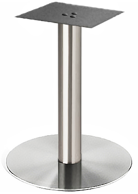 Подстолье из полированной нержавеющей стали (матовое). Основание плоское. Размер верхней площадки: 25*25 см, диаметр трубы 60 мм. Рекомендуемый размер столешницы: Ø60Характеристики:Высота: 55смДиаметр..