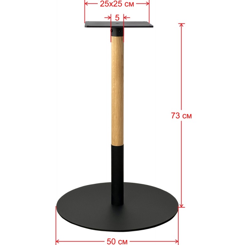 Подстолье. Материал: сталь. Ножки из массива дерева. Рекомендуемый размер столешницы: Ø60.