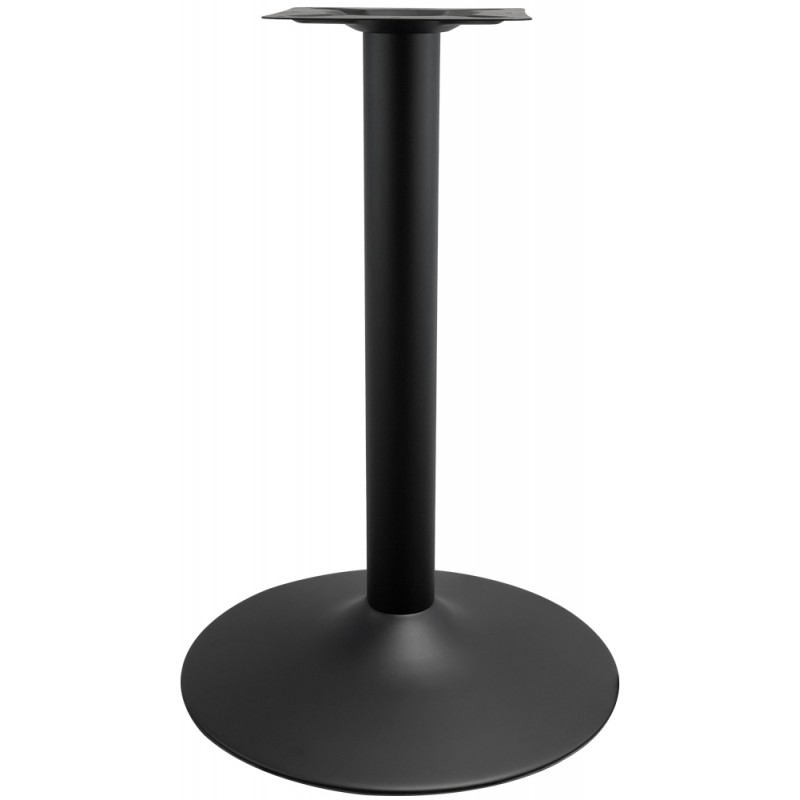 Подстолье металлическое. Труба и основание-черное порошковое покрытие. Основание в виде рюмки. Рекомендуемый размер столешницы: D-70, 70х70.