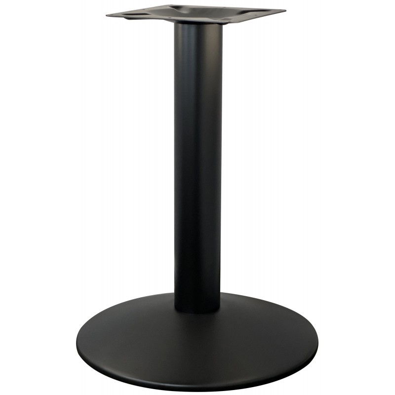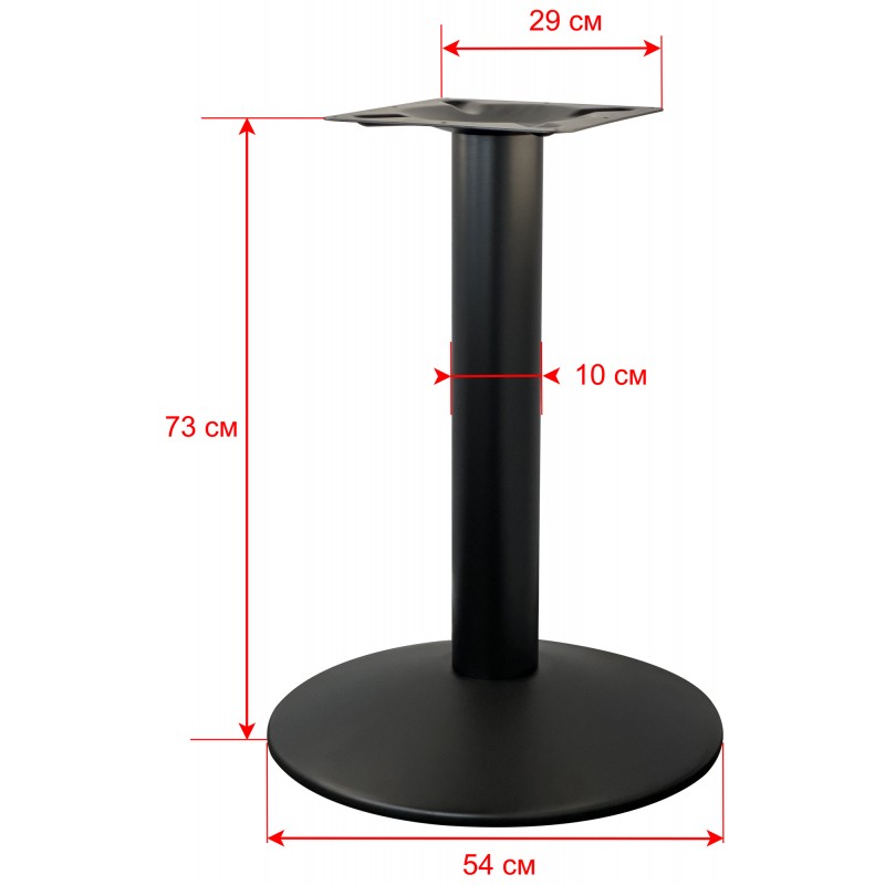 Подстолье металлическое. Труба и основание-черное порошковое покрытие. Основание сферическое. Рекомендуемый размер столешницы: Ø90, 90х90.