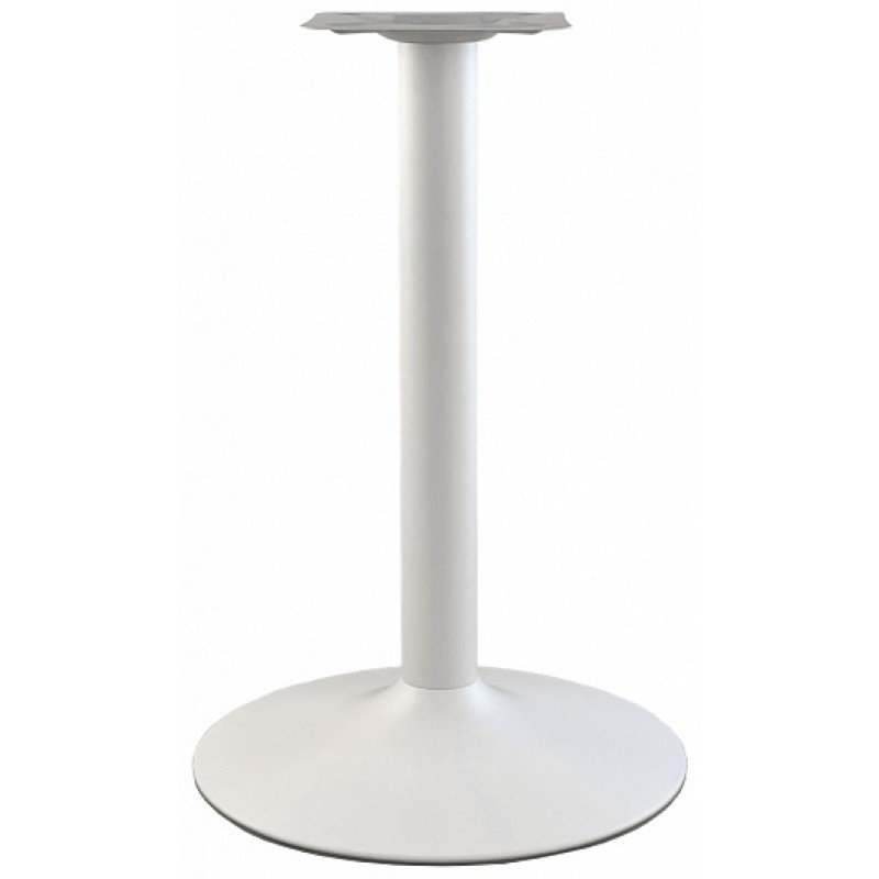 Подстолье металлическое. Труба и основание-белое (порошковое напыление). Основание "рюмочкой". Рекомендуемый размер столешницы: Ø70, 70х70.