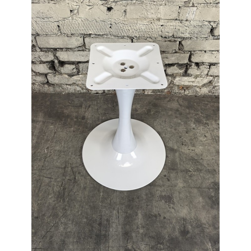 Подстолье стальное. Труба и основание-белое порошковое покрытие. Рекомендуемый максимальный размер столешницы - Ø60 Верхняя площадка 25x25 см.